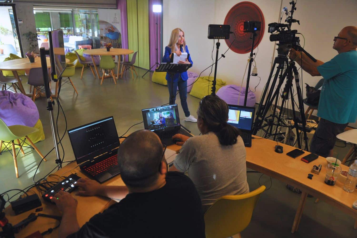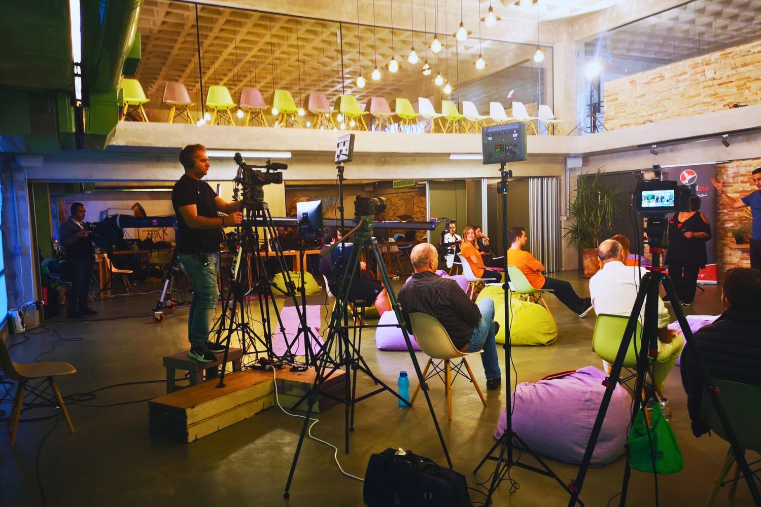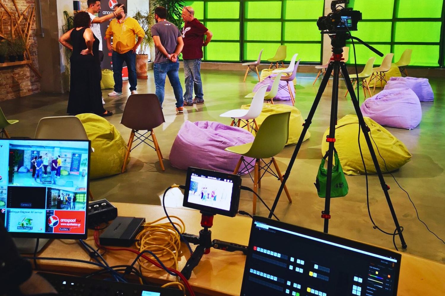 Οι ευέλικτοι χώροι μας μετατρέπονται εύκολα σε στούντιο – πλατό που μπορεί να καλύψει ένα μεγάλο εύρος αναγκών, για εκπομπές διαδραστικών ζωντανών συζητήσεων, συνεδρίων, σεμιναρίων (webinars), «συναντήσεων» και άλλων προγραμμάτων ή επαγγελματικών διοργανώσεων.